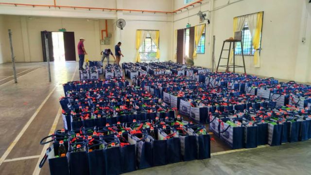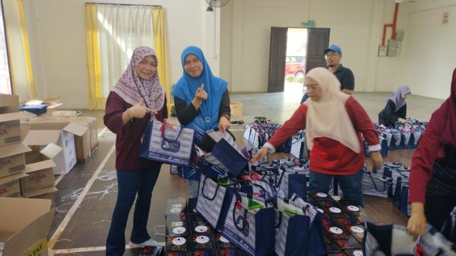 Persiapan Pembungkusan Beg Goodies Majlis Penyampaian Sumbangan Ramadan & Berbuka Puasa YAB Ketua Menteri Melaka di DUN Tg Bidara Parlimen Masjid Tanah pada 16 Mac 2024