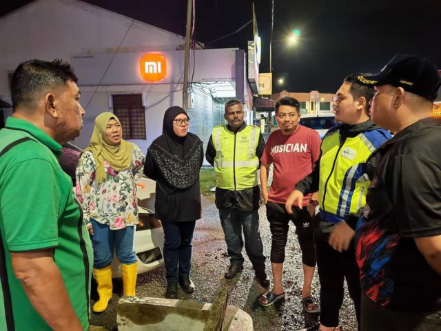 Puan Pegawai Daerah & Tuan Cado hadir ke Lawatan Banjir di DUN Durian Tunggal pada 15 April 2024